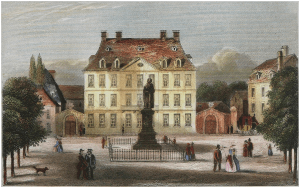 M.d’Arblay had been quartered at the house of Mr. Nell, but there was not room for Fanny and she was obliged most reluctantly to eat and lodge with Madame de La Grange in what is now Dietrichstrasse 40